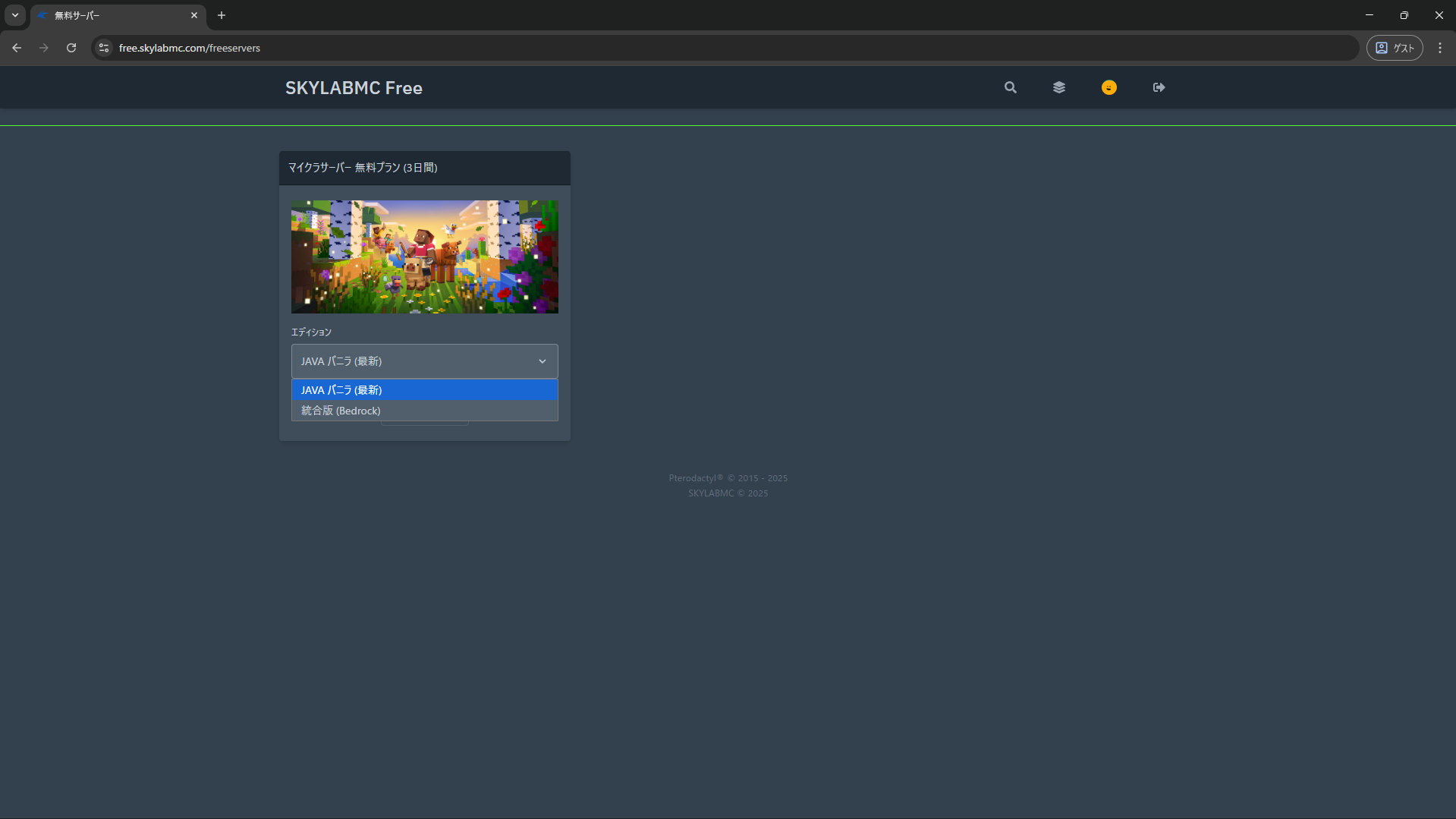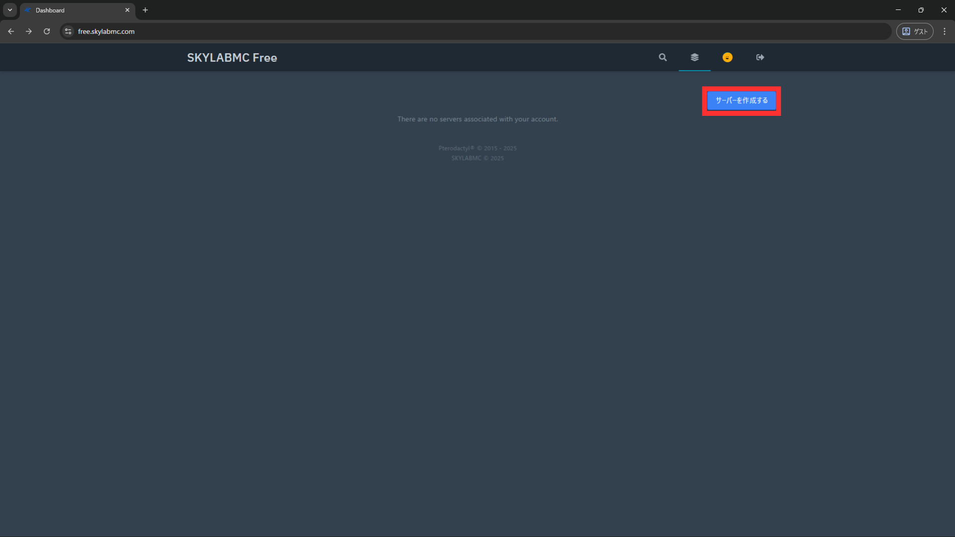 無料プランをご利用の方コントロールパネルの使い方サーバーの作成方法このページの見出しサーバーの作成方法 新しいサーバーを作成する手順について解説します。 1. サーバー作成画面を開く ログインが完了したら、ダッシュボードにある 「サーバーを作成する」 ボタンをクリックします。 2. サーバータイプの選択 作成するサーバーの種類を Java版 または Bedrock版 から選択してください。 3. 作成 種類を選択した後、「サーバーを作成」 ボタンをクリックすると、サーバーのセットアップが開始されます。