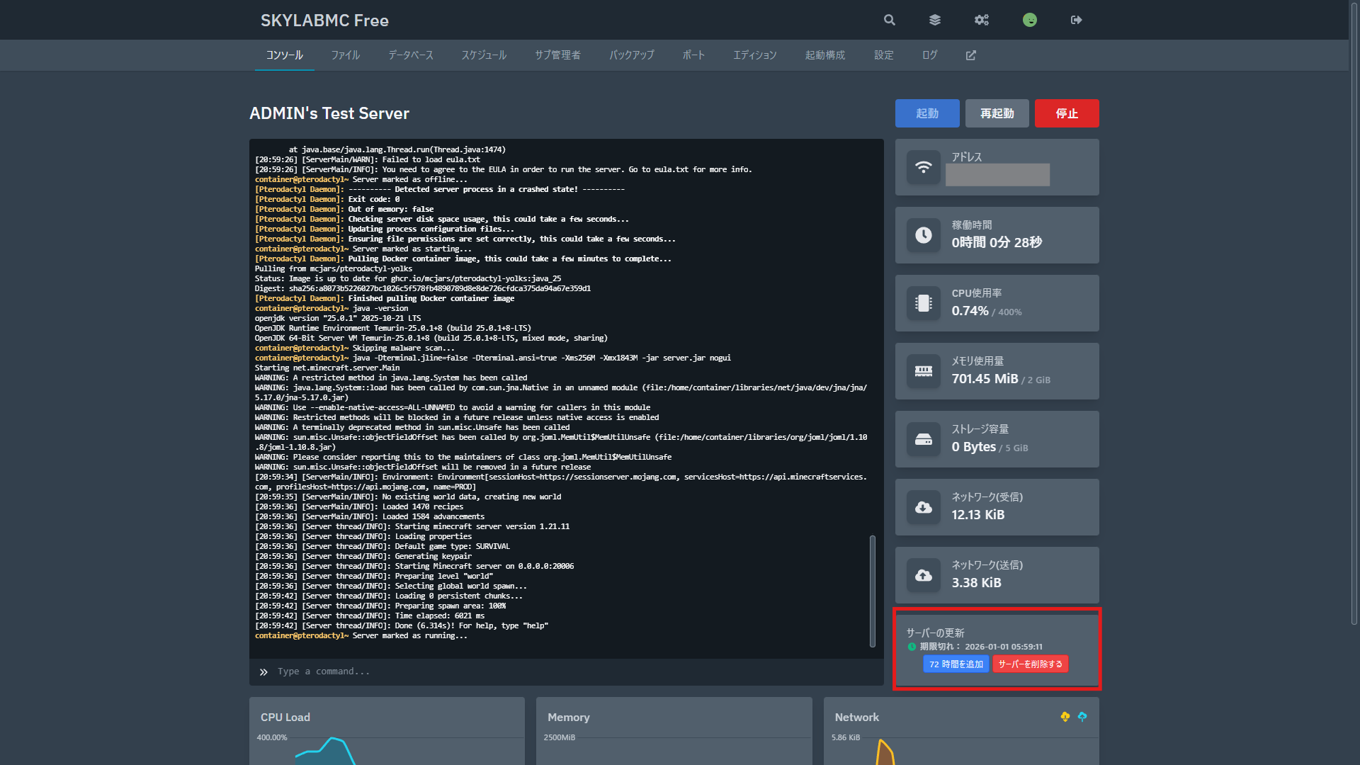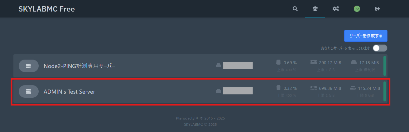 無料サーバーは手動更新制となっています。 利用期限までに更新手続きを行わなかった場合、サーバーは一時的に停止されます。