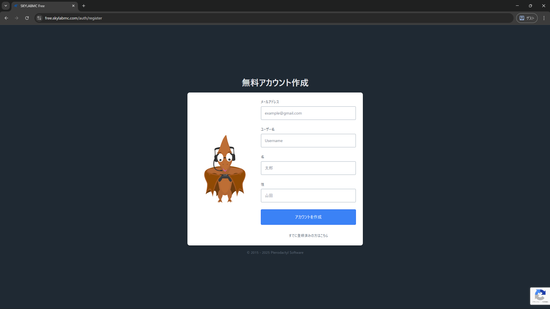 登録の実行 すべての項目を入力したら、「アカウントを作成」ボタンをクリックしてください。