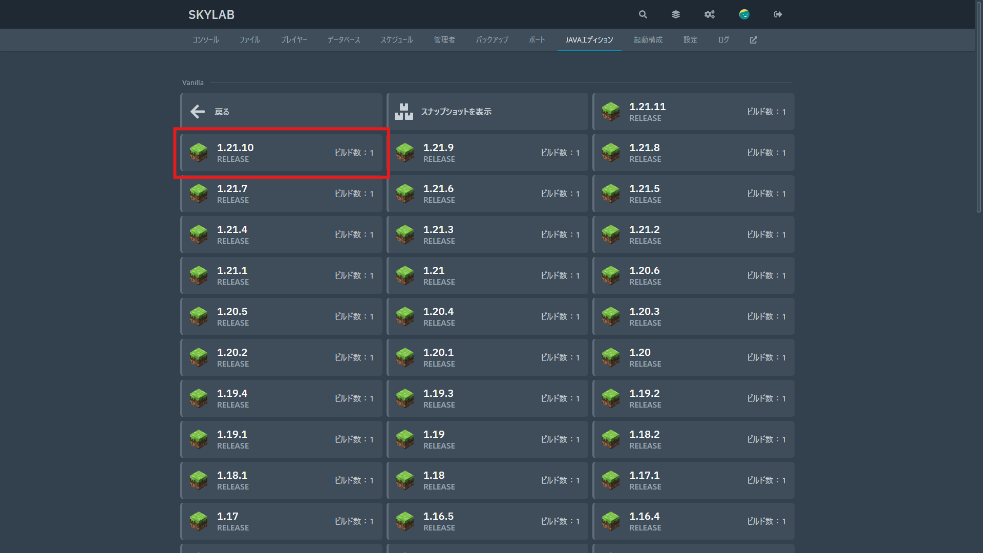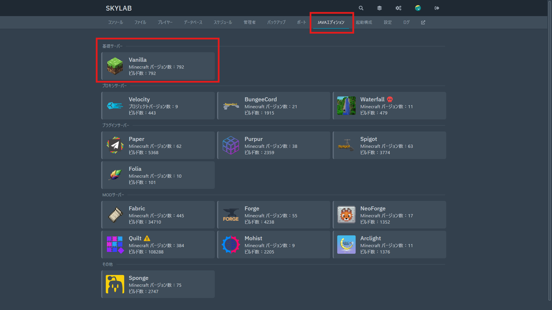 ここでは、Vanilla(バニラ)サーバー をインストールします。